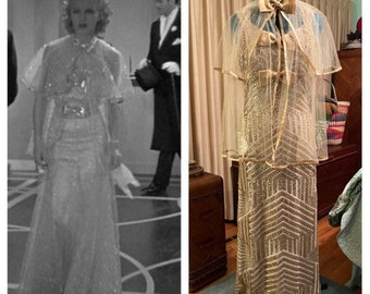 Gowns and Dresses Tags. Created for Bbeauty Design 2017. Full length gray beaded gown worn by Ginger Rogers in the 1936 RKO film.